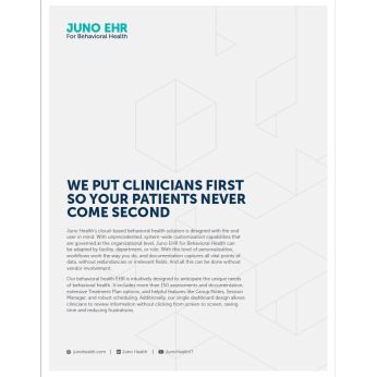 Healthcare IT is broken. We’re fixing it. Juno Health was born because technology providers had fallen behind, leaving clinicians with dysfunctional solutions developed decades ago. Instead of facilitating care, EHRs were detracting from it.
